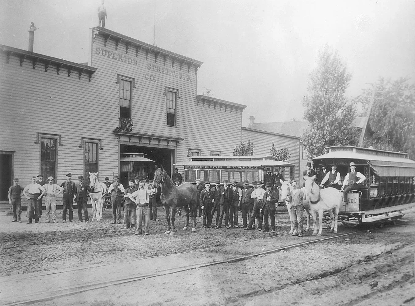 Horse-drawn streetcars from the Superior Street Railway Company, circa 1880; Plain Dealer Archives